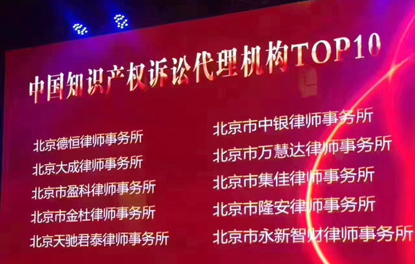 2017年6月23日,备受关注的知产宝“2016年度中国十佳知识产权诉讼代理机构榜单发布会”在北京隆重举行,新爱体育凭借稳健的综合实力,入选“中国知识产权诉讼代理机构”TOP10和“中国商标行政诉讼代理机构”TOP10榜单。国内知识产权知名法律服务机构,近百位国内外大中型企业代表,以及36家知名媒体齐聚一堂,共同见证了榜单发布情况。